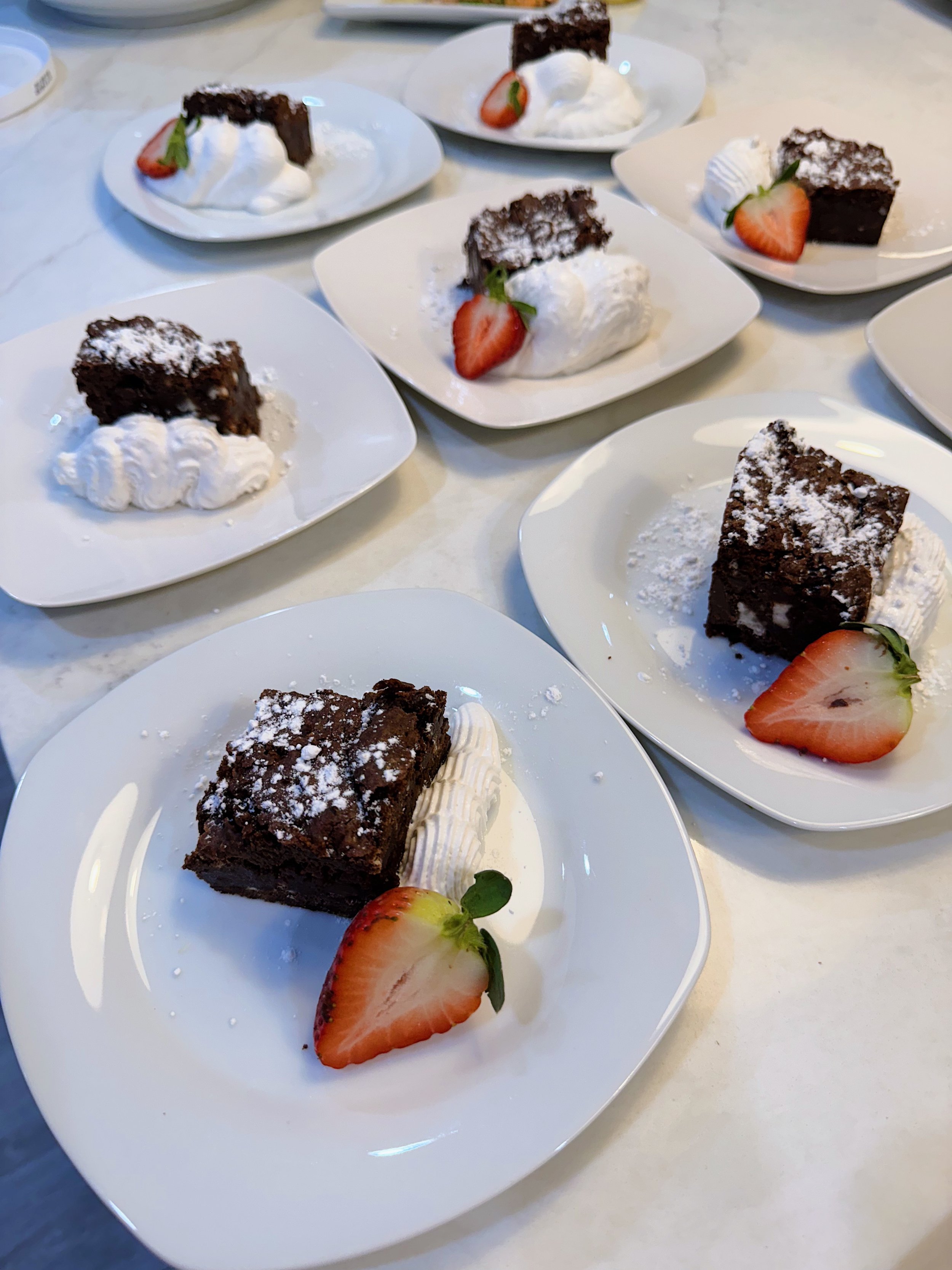 It’s a need! Build-your-own sundae bar, vegan brownies, warm chocolate chip cookies, and flourless chocolate torte with salted caramel are all popular options!