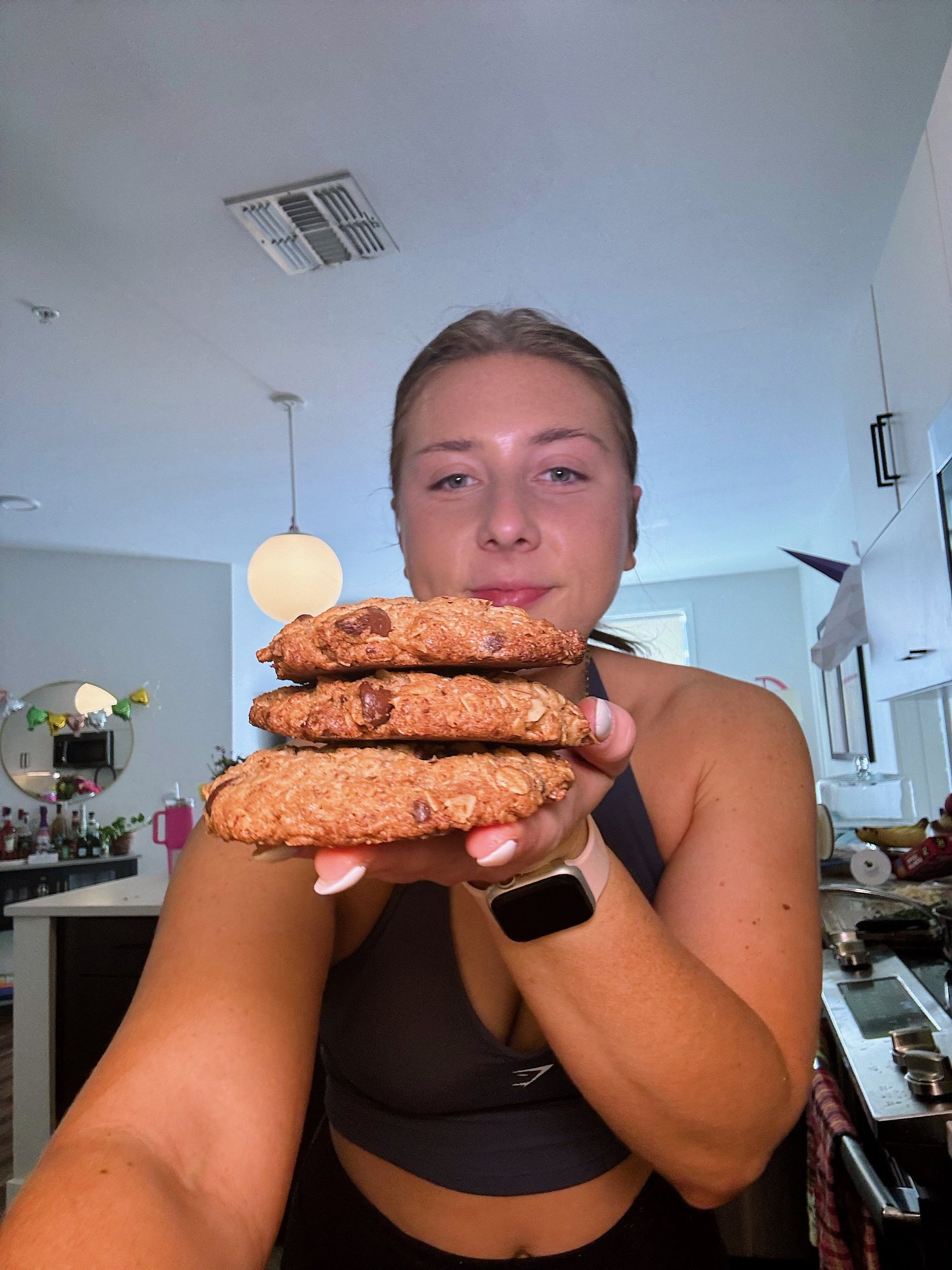 Add in the flax, oats, and chocolate chips and combine by hand with a rubber spatula until just combined. Do not overmix here!