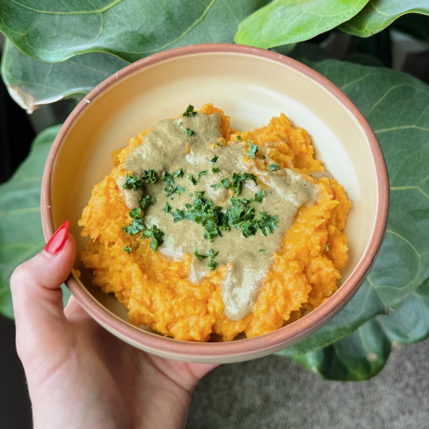 Sweet Potato Mash & Creamy Mushroom Gravy