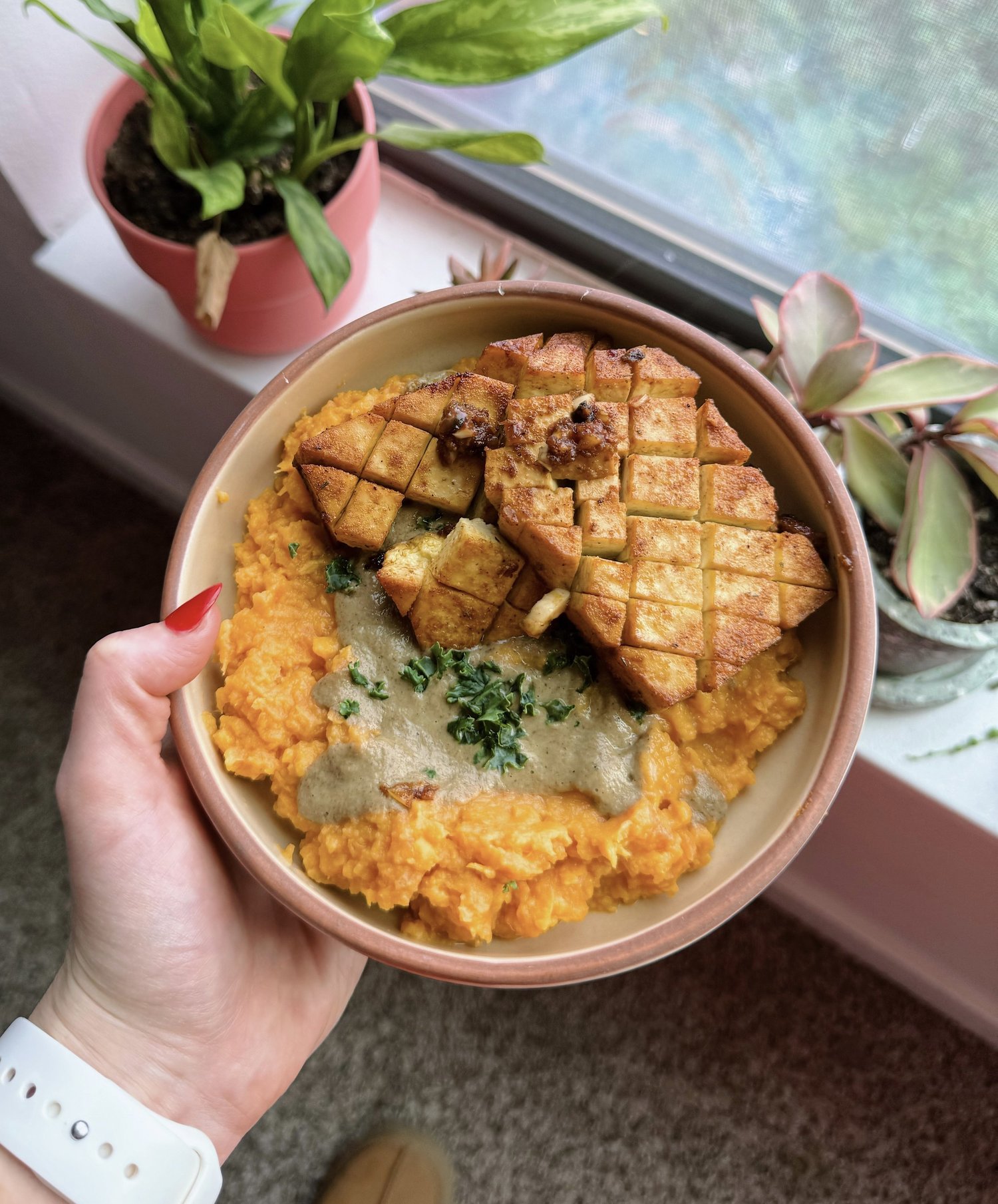 Personally, I’m tired of my holiday dinner plate being full of sides. There are countless plant-based recipes for healthy sides and even desserts. But I feel like the protein options are always slacking. Tofurkeys are great, but not gluten-free usually and I would like to avoid processed food as much as I can. This tofu recipe is so easy and delicious you will not miss the turkey or the tofurkey! It is easy to half the recipe or double it depending on how many you are serving. This recipe serves about 5!